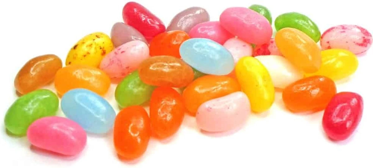 Verschillende kleuren Jelly Beans. Productinformatie:plm 1,7 cm lang x 0,9 cm breedgewicht gemiddeld 2 gram per stuk