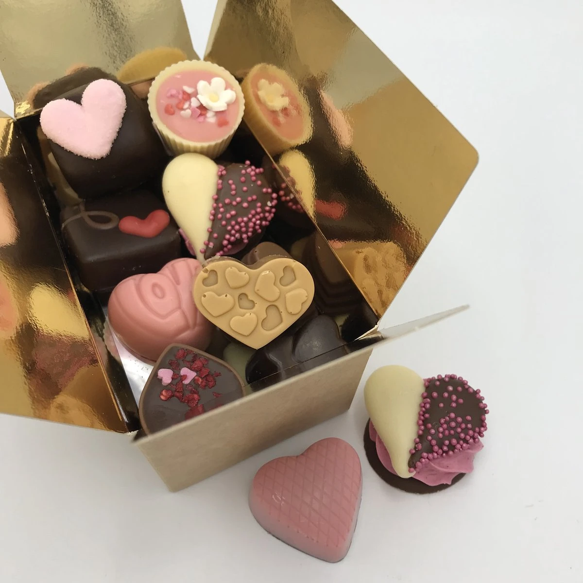 | Verpakkingsinhoud | Een doosje (karton) gevuld met 250 gram bonbons. |