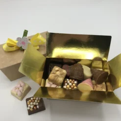 | Verpakkingsinhoud | Een doosje (karton) gevuld met 250 gram bonbons opgemaakt met lint en een stoffen bloem. Afmetingen doosje (6 cm hoog 7 cm breed en 12,5 cm lang) |
