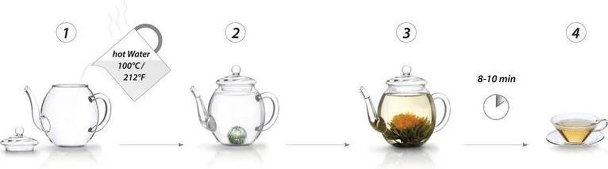 | Verpakkingsinhoud | 1 theepot en 6 unieke theebloemen. |