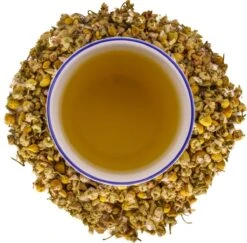 Kamille is een rustgevend kruid dat veel wordt gebruikt in kruidenthee mengsels, maar ook lekker is om op zichzelf te drinken. Kamille thee bestaat uit een heerlijke zachte bloesem met een licht fruitige smaak. Het kalmerende effect van kamillethee maakt het erg populair als thee voor het slapen gaan.