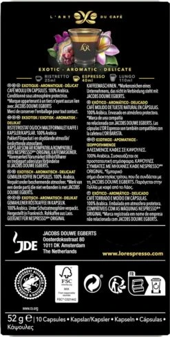 - *Merk van een derde partij die niet verbonden is met JACOBS DOUWE EGBERTS. Zie lijst van geschikte koffiemachines op www.lorespresso.com.