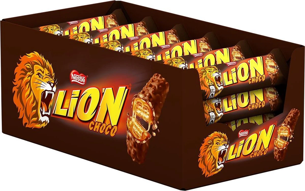 Lion is bekend om de stevige bite van krokante granen, karamel en chocolade. Het ruwe uiterlijk van het product geeft Lion een stoere uitstraling