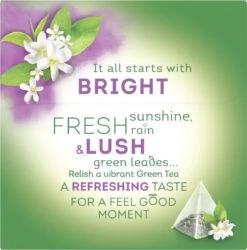 Lipton Jasmine Groene Thee is een groene thee gecombineerd met jasmijnblaadjes, waardoor de thee een heerlijke lichte afdronk heeft. Deze groene thee heeft een kruidige en zachte smaak. Voor een uniek theemoment. Perfect om de dag mee te beginnen, maar ook lekker om te drinken na je work-out of tijdens een momentje voor jezelf. De veelzijdige Lipton-smaken zijn gecombineerd in een piramidevormig zakje dat speciaal is ontwikkeld om de ingrediënten meer ruimte te geven om te trekken. Laat de thee 2 minuten intrekken en pak even jouw theemoment. Bij Lipton geloven we dat kleine veranderingen een groot verschil kunnen maken voor de planeet. Na de overgang van Lipton Ice Tea naar volledig gerecycled plastic in 2020 worden de theezakjes van Lipton in 2021 volledig biologisch afbreekbaar. Dit betekent dat de theezakjes bij het gft-afval kunnen worden weggegooid. In de loop van het jaar zal Lipton de doosjes met plastic verpakking vervangen door kartonnen doosjes met een beschermende coating. Deze kartonnen verpakkingen kunnen worden gerecycled bij het oud papier. Hiermee zal Lipton alleen in Nederland al 88 ton plastic per jaar besparen. Elk kopje Lipton-thee wordt duurzaam gekweekt op Rainforest Alliance gecertificeerde theeplantages met behulp van natuurlijke regen, wind en zonneschijn om je onze kenmerkende smaak en het rijke aroma te geven. Zo kan elk kopje van onze thee niet alleen je dag helpen opfleuren, maar ook de toekomst van al onze theeboeren en hun families, en natuurlijk ook onze planeet.