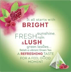 - Een smaakexplosie van groene thee, framboos en granaatappel