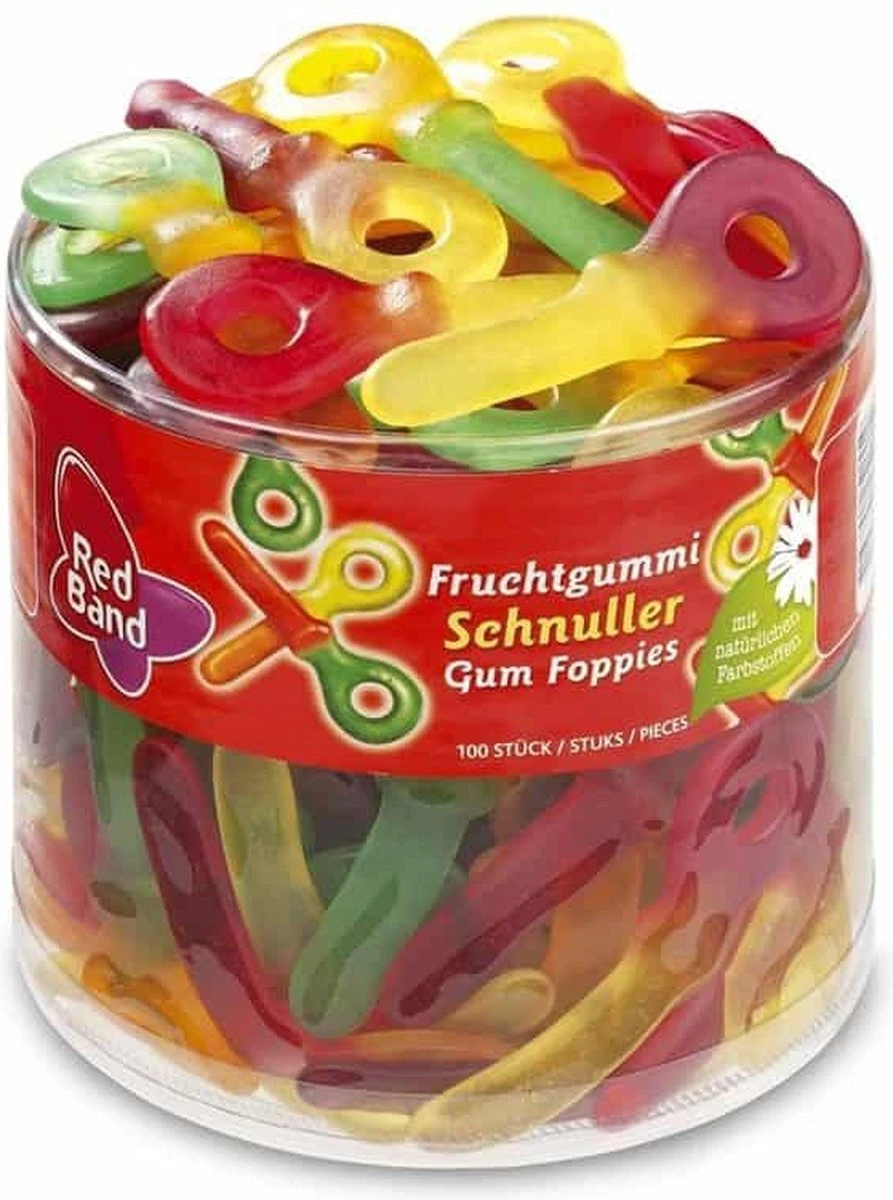 | Ingrediënten | glucosestroop, suiker, gemodificeerd zetmeel, zetmeel, gelatine, voedingszuur (melkzuur), plantaardige oliën (kokos, koolzaad), aroma's, concentraat van (zwarte wortel, spirulina, saffloer, zwarte bes, wortel), glansmiddel (bijenwas), kleurstoffen (paprika extract, curcumine). |