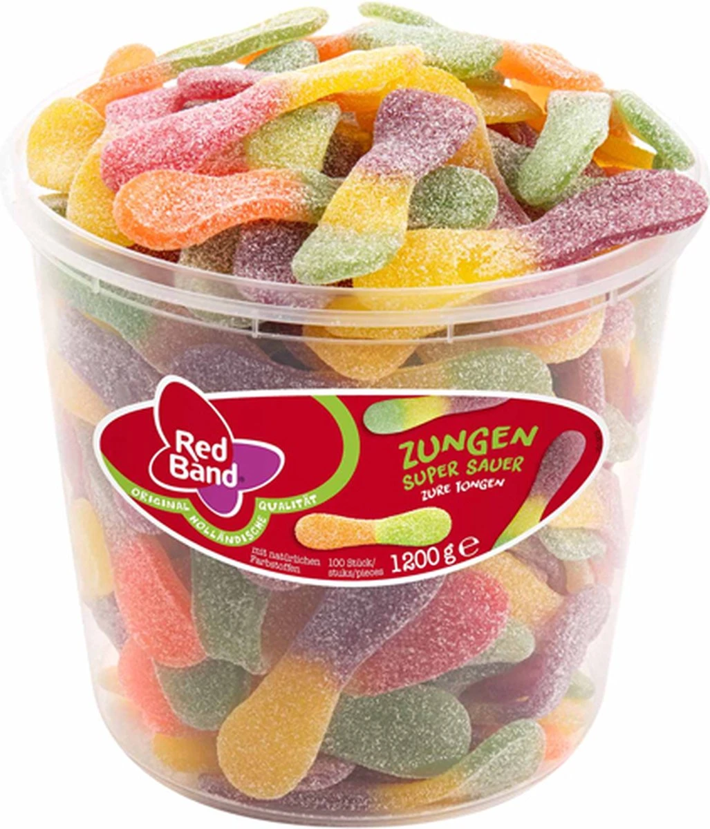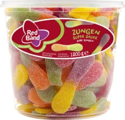 Red Band Zure Tongen zijn zure winegums met een fruitsmaak, in meerdere kleuren.