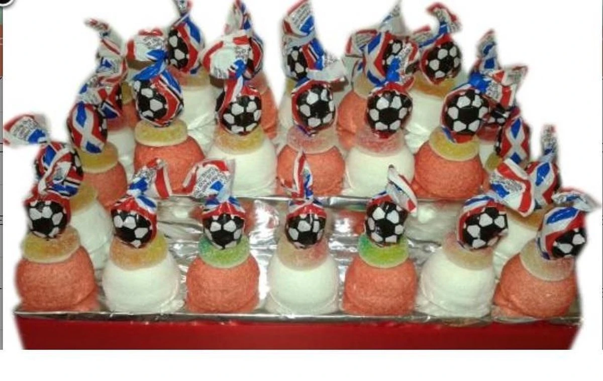 Per traktatie: 1 spek (rood of wit), 1 fruitgum of dropring, 1 voetballollie