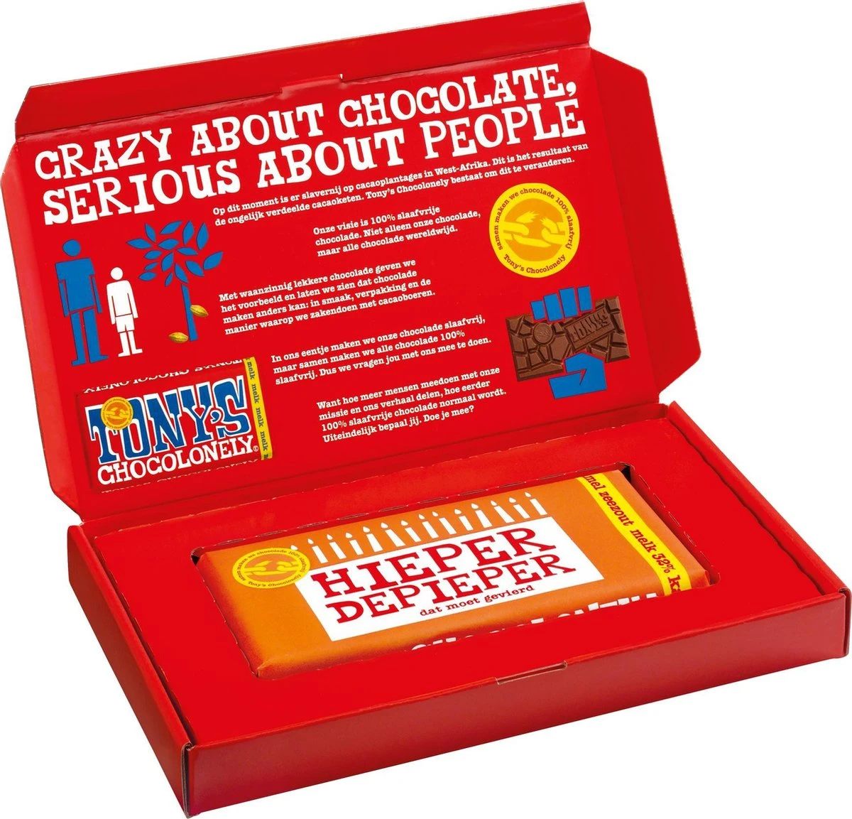 Tony’s Chocolonely Cadeaudoos: Melk Karamel Zeezout “Hieperdepieper” Chocoladecadeau