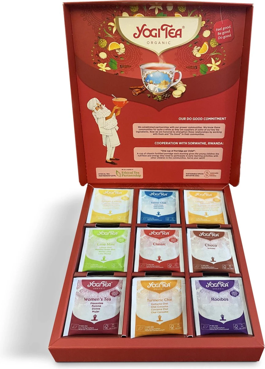 | Verpakkingsinhoud | een cadeaudoos met 9×5 Yogi Tea Theezakjes |